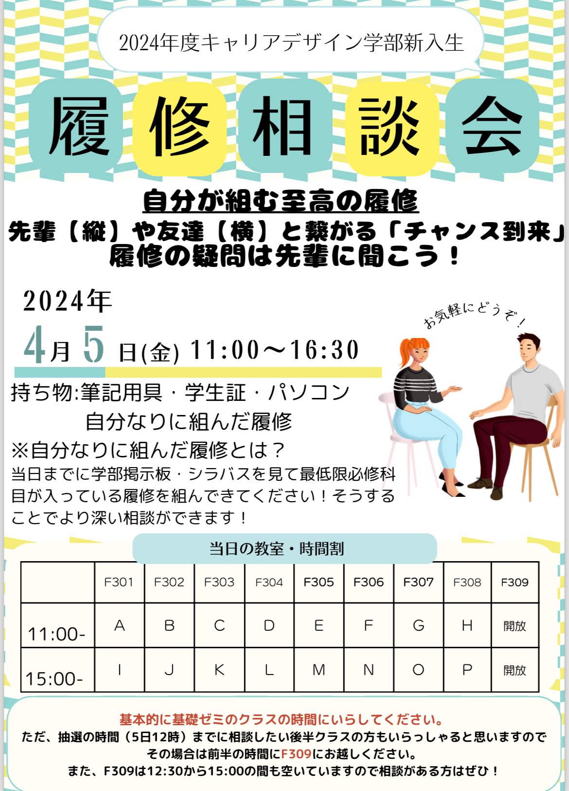 【対象:新入生】4/5(金)開催:履修相談会について