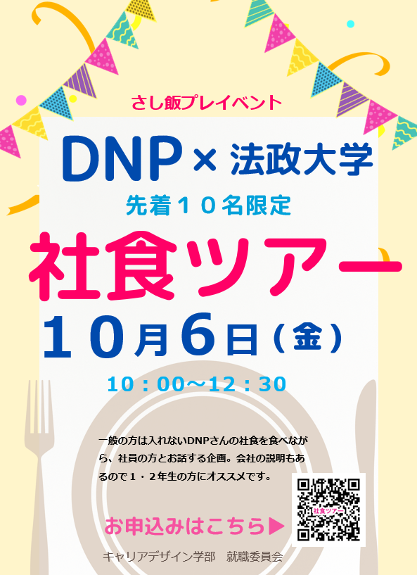 【対象:1.2年生限定】さし飯プレイベント「DNP×法政大学 社食ツアー」開催のお知らせ