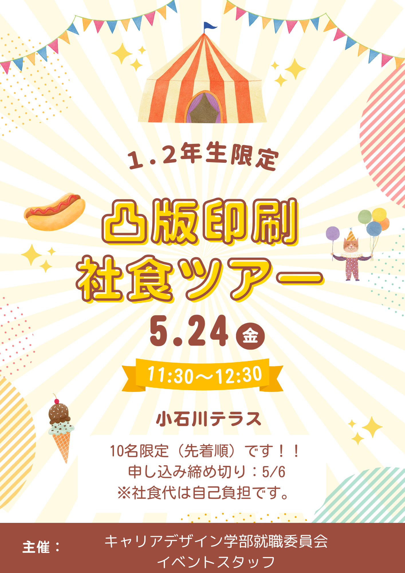 【対象:1,2年生】就職委員会より「凸版印刷 社食ツアー」参加者募集のお知らせ