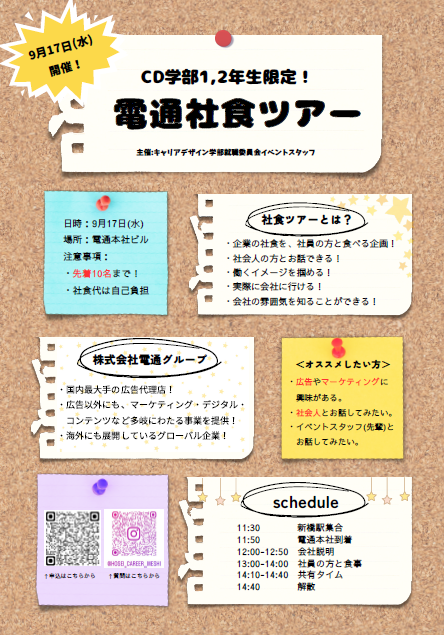 【対象:1・2年生限定】 「さし飯体験プログラム」プレイベント(社食ツアー)の実施について(就職委員会)