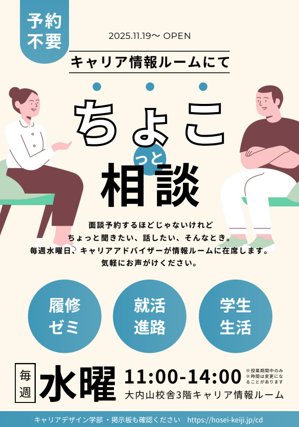【対象:全学年】キャリア情報ルームでのちょこっと相談について(予約不要)