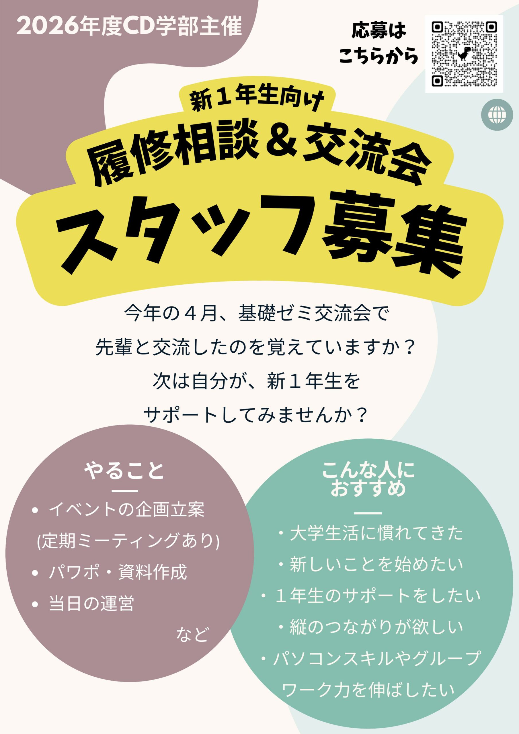 【履修相談会&交流会】の運営スタッフを募集します。*先着順